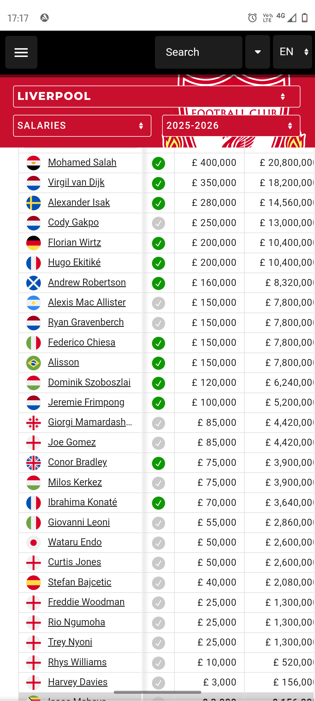 Liverpool Player Sightings 1751